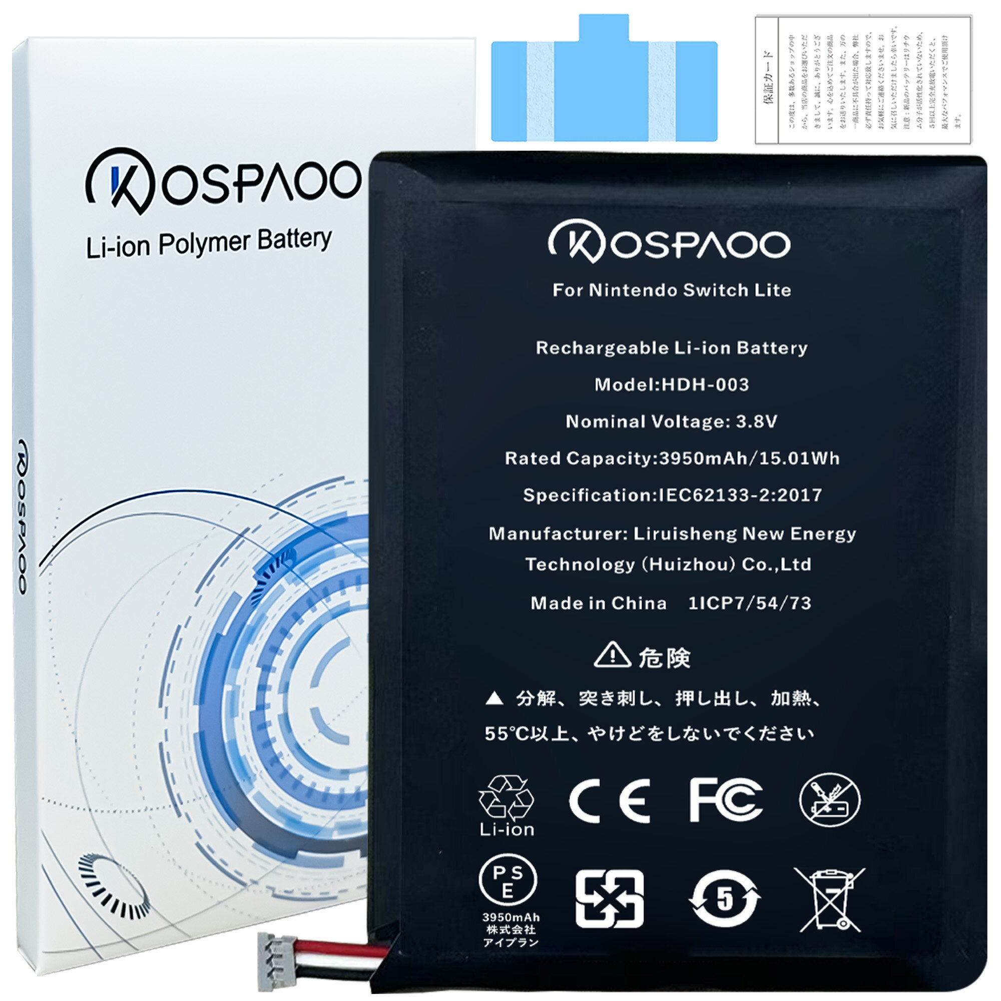 KOSPAOO for Nintendo Switch Lite バッテリー交換 大容量3950mAh 増量380mAh 3.8V HDH-003電池 PSE認証 対応HDH-001/HDH-S-UXA-C0/HDH-A-BPHAT-C1等機種 Rechargeable Li-ion Battery 高温・低温耐性 600~800サイクル寿命 適用Switch Lite電池【No Tool】