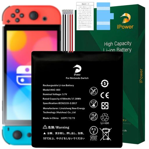 iPowerforNintendoSwitchバッテリー互換大容量4700mAh9%増量3.7VHAC-003電池PSE証明書適用SwitchOLED/HAC-001/HEG-001機種RechargeableLi-ion