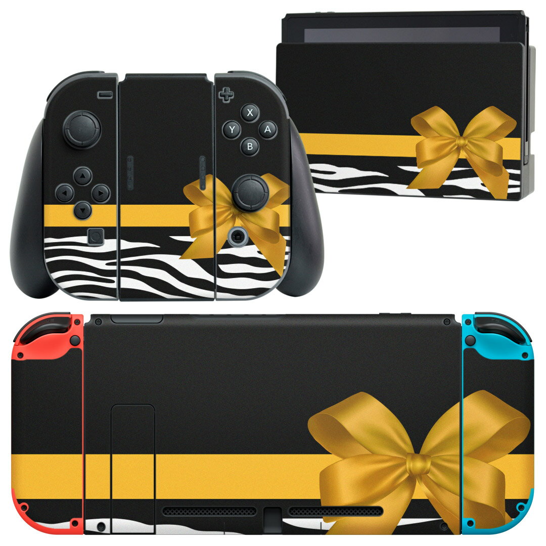 igsticker Nintendo Switch 用 デザインスキンシール 任天堂 ニンテンドー スイッチ 専用 本体ドック Joy-Con Joycon ジョイコン 専用 ゲーム機 カバー アクセサリー フィルム ステッカー 004908 ゼブラ リボン