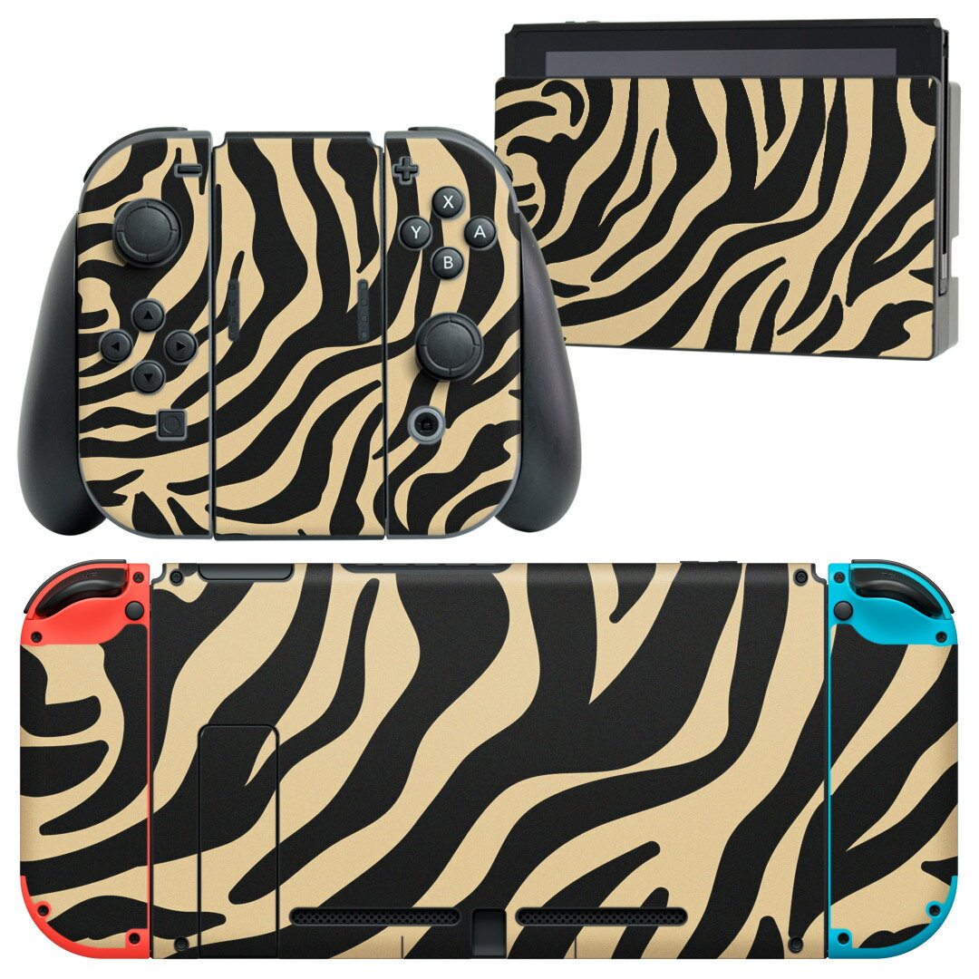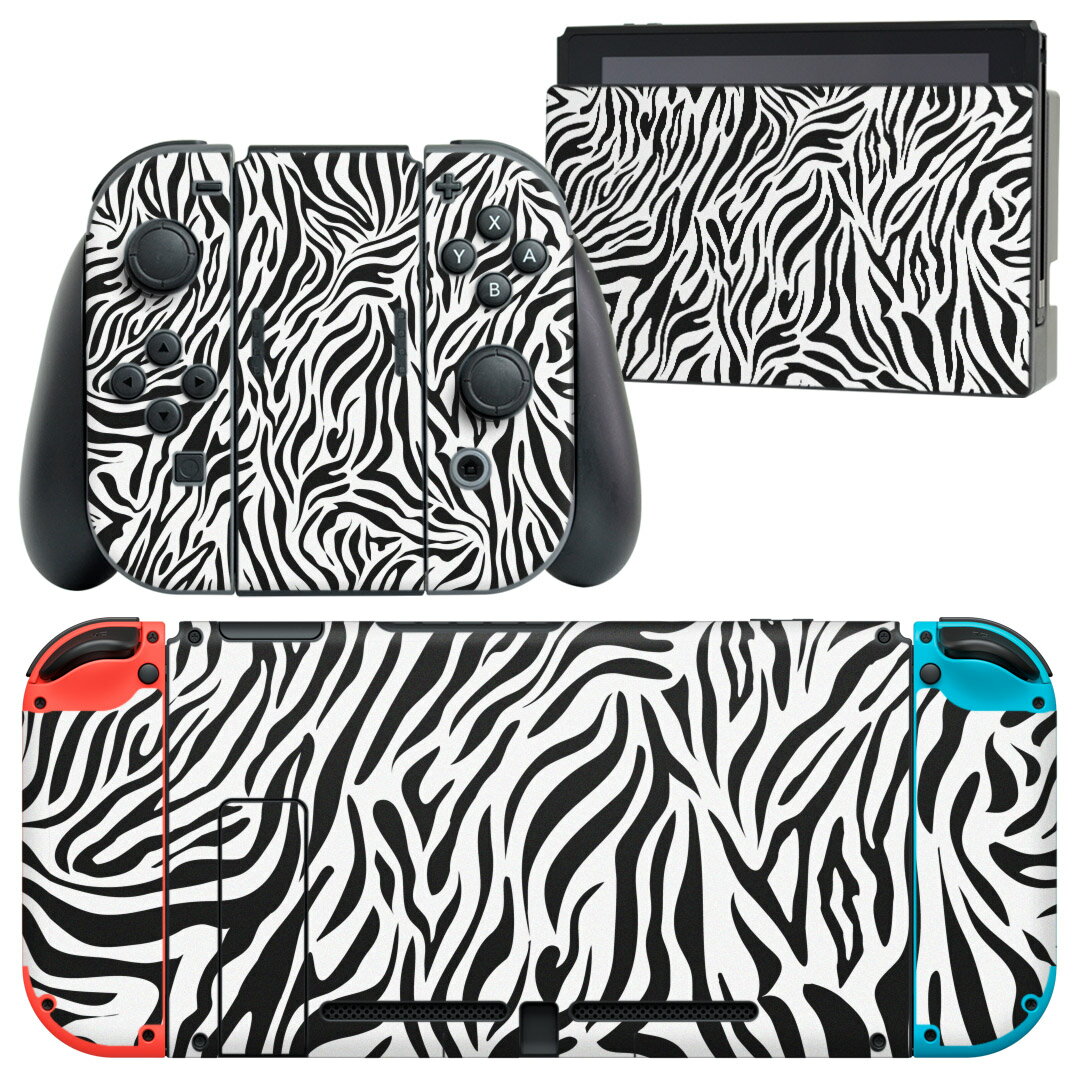 igsticker Nintendo Switch 用 デザインスキンシール 任天堂 ニンテンドー スイッチ 専用 本体ドック Joy-Con Joycon ジョイコン 専用 ゲーム機 カバー アクセサリー フィルム ステッカー 012697 ヒョウ柄 ゼブラ 動物