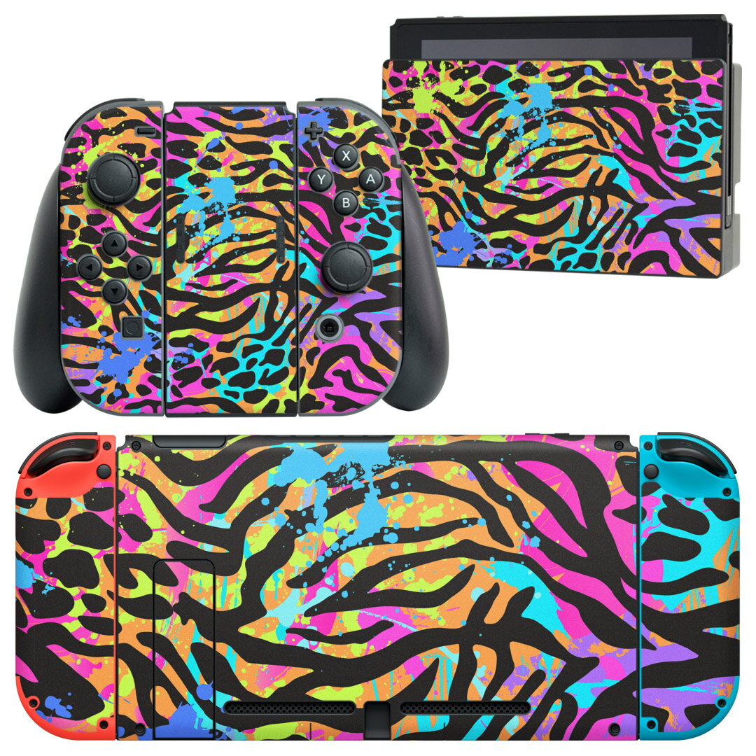 igsticker Nintendo Switch 用 デザインスキンシール 任天堂 ニンテンドー スイッチ 専用 本体ドック Joy-Con Joycon ジョイコン 専用 ゲーム機 カバー アクセサリー フィルム ステッカー 001241 アニマル レオパード ゼブラ
