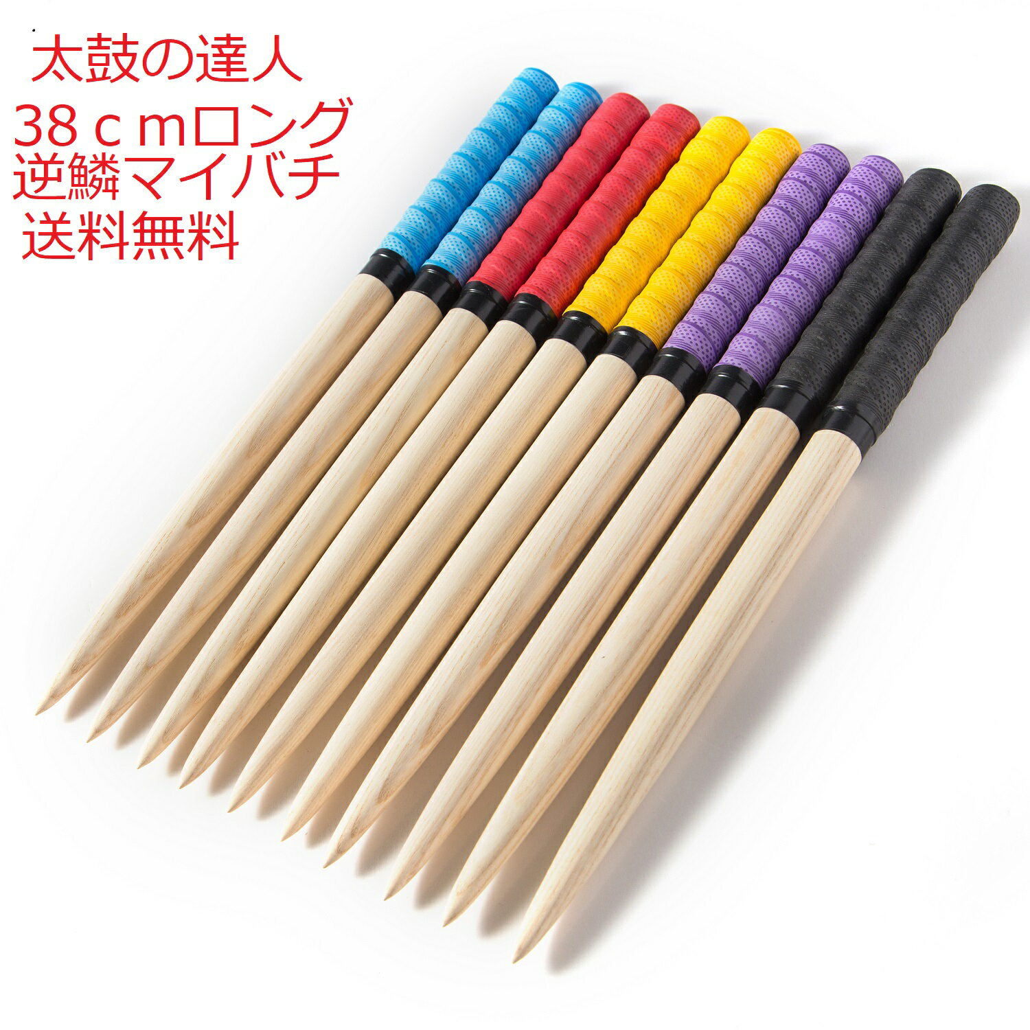 逆鱗マイバチ 太鼓の達人 マイバチ 如意棒バチ スーパーロングマイバチ テーパー 予備グリップ7個付 交換用や魔改造に アオダモ 木製バット素材 硬材 反発力 個性ある木目 ロングバチ 長さ38cm直径2cm アーケードで大活躍!赤 黄色 空 黒 紫5色から選べる