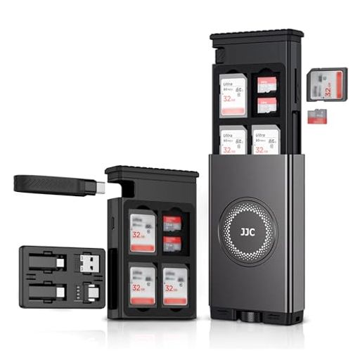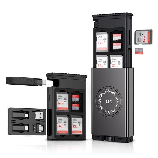 JJC高速カードリーダー機能付きメモリーカードケース24スロットSDMicroSDTFカード収納ケースType-C充電ケーブルカードType-CtoライトニングMicroUSBType-AOTG変換アダプター