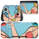 igsticker Nintendo Switch 用 デザインスキンシール 任天堂 ニンテンドー スイッチ 専用 本体ドック Joy-Con Joycon ジョイコン 専用 ゲーム機 カバー アクセサリー フィルム ステッカー 013420 女性 イラスト カラフル
