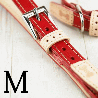 キュンときちゃうリード Mサイズは、小型犬から中型犬まで対応する本革製のおしゃれな犬用リードです。全7色の豊富なカラーバリエーションからお選びいただけ、こちらのレッドは特に目を引く鮮やかな色合いが特徴です。ヌメ革の自然な風合いと、耐久性に優れたレザーが組み合わさり、長くご愛用いただけます。 シンプルながらも洗練されたデザインは、どんな犬種にもマッチし、特に柴犬やフレンチブルドッグなどの愛犬とのお出かけがより楽しくなること間違いなしです。細部にわたるこだわりが感じられるステッチ加工や、調節可能なバックル部分は使い勝手も抜群。お散歩やトレーニング時にも、快適な操作性を提供します。 このリードを使えば、愛犬との絆も一層深まることでしょう。毎日のお散歩がもっと楽しく、もっと特別な時間に変わるキュンときちゃうリードで、愛犬との快適な歩行をお楽しみください。キュン♪ときちゃうリードM size:15mm 7colors material:Itarian leather made in japan 革は当店自慢のイタリアンレザー/リスシオとVVNを使用し、 とことん明るく華やか♪柔らかな質感で可愛らしい雰囲気のあるリードです。 首輪同様、サル革、ボーンマーク部分と裏革は色を変えて遊び心を演出しております。 カラーバリエーションは可愛い色からシックな色まで全7色 Mサイズの仕様変更点 画像クリックで拡大画像が開きます レッド ピンク イエロー ブルー ブラウン パープル チョコ 革製リードの本体繋ぎ金具を可愛いマルカンに変更しました。 【キュンときちゃうリード Mサイズ】【全7色】 レッド ピンク イエロー ブルー 送料無料 犬 リード 革 犬リード 犬のリード 犬用リード ドッグリード 小型犬 中型犬 本革 ヌメ革 レザー おしゃれ かわいい 可愛い シンプル 柴犬 フレンチブルドッグ