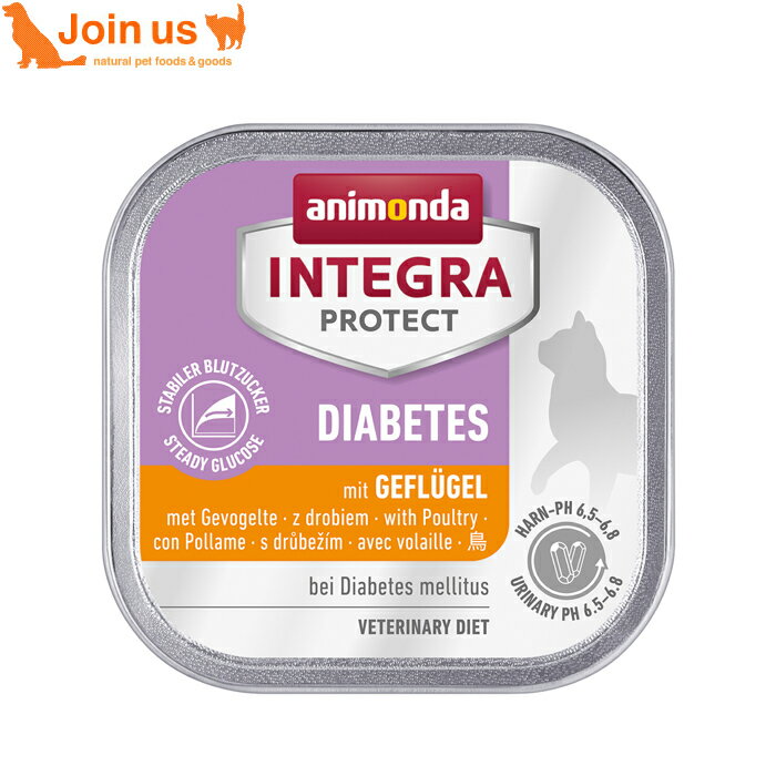 アニモンダ インテグラの食事療法食は、"美味しい"食事療法食です。いくらフードの成分が良くても、食べなければ意味がありません。アニモンダの食事療法食は、まずおいしいフードであることを一番に考え、それでいて食事療法食として成り立つように考えられています。糖の供給量に配慮した糖尿病の猫のために特別に開発された猫用療法食。たんぱく質含有量が高く、炭水化物の供給を最低限に抑えることにより、フード摂取後の血中グルコースの増加を緩やかにします。また、糖尿病だけでなくストルバイト結石と、シュウ酸カルシウム結石にも配慮。マグネシウムとリン、ミネラルをバランスよく供給することで、6.5〜6.9までの理想的な尿ph値を維持します。※最短賞味期限表記についてタイトルに表示の賞味期限は、弊社在庫の最短期日になりますがご注文のタイミングにより表記より長い場合も御座います。◆輸入元入荷状況により表記より短くなる場合も御座います。◆賞味期限のご指定(期限の長い商品等)はお受け出来ませんので、予めご了承ください。この商品は「ヤマト運輸」「ゆうパック」のいずれかにて配送となります。※配送業者を指定のご希望は、ご購入金額に関わらず指定料200円(税込)にてお受けいたします。ご購入時の備考欄に上記いずれかのご希望の配送業者名をご記入ください。全年齢対応・猫用糖尿ケア用療法食アニモンダ インテグラの食事療法食は、"美味しい"食事療法食です。いくらフードの成分が良くても、食べなければ意味がありません。アニモンダの食事療法食は、まずおいしいフードであることを一番に考え、それでいて食事療法食として成り立つように考えられています。糖の供給量に配慮した糖尿病の猫のために特別に開発された猫用療法食。たんぱく質含有量が高く、炭水化物の供給を最低限に抑えることにより、フード摂取後の血中グルコースの増加を緩やかにします。また、糖尿病だけでなくストルバイト結石と、シュウ酸カルシウム結石にも配慮。マグネシウムとリン、ミネラルをバランスよく供給することで、6.5〜6.9までの理想的な尿ph値を維持します。このフードはグレインフリーですので、小麦不耐性のネコにも適しています。・グレインフリー・高いたんぱく質含有量・大豆、砂糖不使用・香料、着色料、保存料不使用機能アニモンダ インテグラプロテクトは、特定の疾病等に対応するために栄養バランスを考慮した、毎日の主要な食事として与えられるフードです。原材料:肉類(牛、鶏、七面鳥、豚、七面鳥心臓、他)、ミネラル類、ビタミンD3分析値(1kgあたり):タンパク質11%、脂肪5%、粗繊維0.3%、粗灰分1.6%、水分81%、スターチ0.1%、糖類0%、タウリン0.6g/kg栄養添加物(1kgあたり)※商品説明ラベルのサイズ上、下記記載より省略されて原材料に記載されている事があります。ビタミンD3 250IU. 銅アミノ酸水和物1mg. 硫酸亜鉛一水和物11.4mg. 硫酸マンガン一水和物1.4mg. ヨウ化カルシウム0.1mgペットたちが生きていく上で必要な栄養素を補う目的に限り、添加物(天然由来)を使用しています。これらはEUで認められた栄養添加物となっており安全です。カロリー(100gあたり):95kcal内容量:100g推奨給餌量体重:3kg 1日あたり:165 - 200g体重:4kg 1日あたり:200 - 265g体重:5kg 1日あたり:235 - 300g体重:6kg 1日あたり:265 - 345g推奨使用期間初回6ヵ月以内。使用開始前および使用期間を延長する場合には使用前に獣医師に相談することをおすすめします。症状が改善した場合は無期限に使用できます。原産国:ドイツ推奨使用期間についてQ)インテグラプロテクトシリーズの商品には【推奨使用期間】が最初は3ヶ月とか6ヶ月以内などの記載がありますが、それ以上長期的に利用することはできないのでしょうか?A) インテグラプロテクトシリーズの商品のうち、「胃腸ケア」シリーズ以外の商品は、症状のあるイヌまたはネコが生涯そのフードのみを食べて長期的に生活できるよう作られていますので、原則的には無期限に使用できます。【推奨使用期間】に記載されている3ヶ月や6ヶ月の意味は、その期間中に獣医師の検査を受け、「そのフードが本当に体調にあっているかどうかを確認してください。」ということです。検査の結果、体調にあっていれば無期限にご利用いただけます。これに対して「胃腸ケア」シリーズの商品は、症状のある間だけ使用することを想定して作られていますので、無期限に使用することはできません。症状が回復したら通常のフードへ切り替えることが必要です。缶詰、トレイ等のフードについて缶詰、トレイ等のフード類は、空気圧や流通過程の衝撃等の原因により、へこみなどが生じる場合がございますが、内容に問題はございません。あらかじめご了承ください。※最短賞味期限表記についてタイトルに表示の賞味期限は、弊社在庫の最短期日になりますがご注文のタイミングにより表記より長い場合も御座います。◆輸入元入荷状況により表記より短くなる