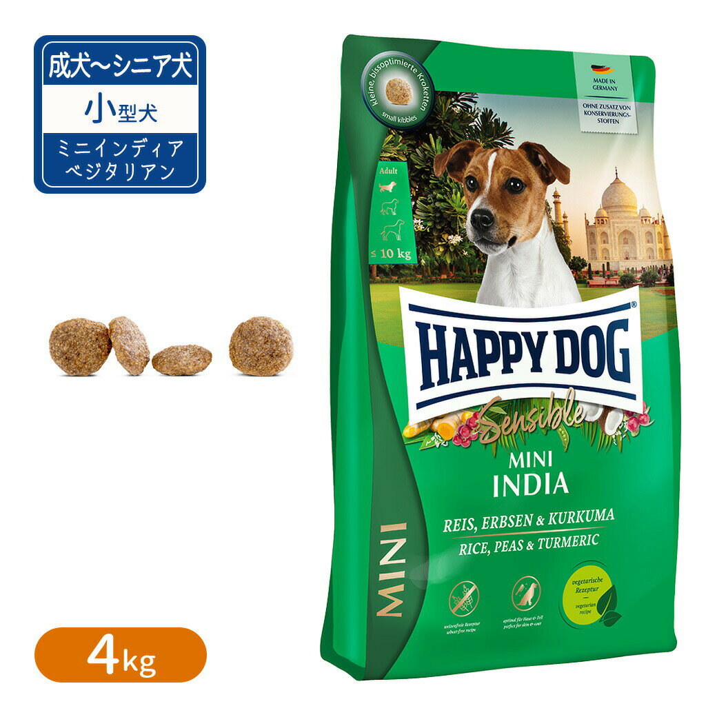 ハッピードッグ HAPPY DOG ドッグフード ミニ センシブル インディア(ベジタリアン)ライス、えんどう豆&ターメリック アレルギーケア(成犬〜シニア犬用) 4kg【送料無料】
