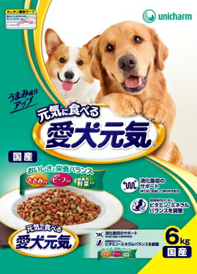 【エントリーP5倍】ユニ・チャーム 愛犬元気 ビーフ・緑黄色野菜・小魚入り 6KG