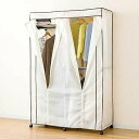 ドウシシャハンガーラックカバー付きワードローブ幅120cm頑丈全体耐荷重36kgキャスター付き大容量白アイボリースリムおしゃれ2段幅120x奥行50x高さ183cm洋服収納パイプハンガー洋服掛け衣…