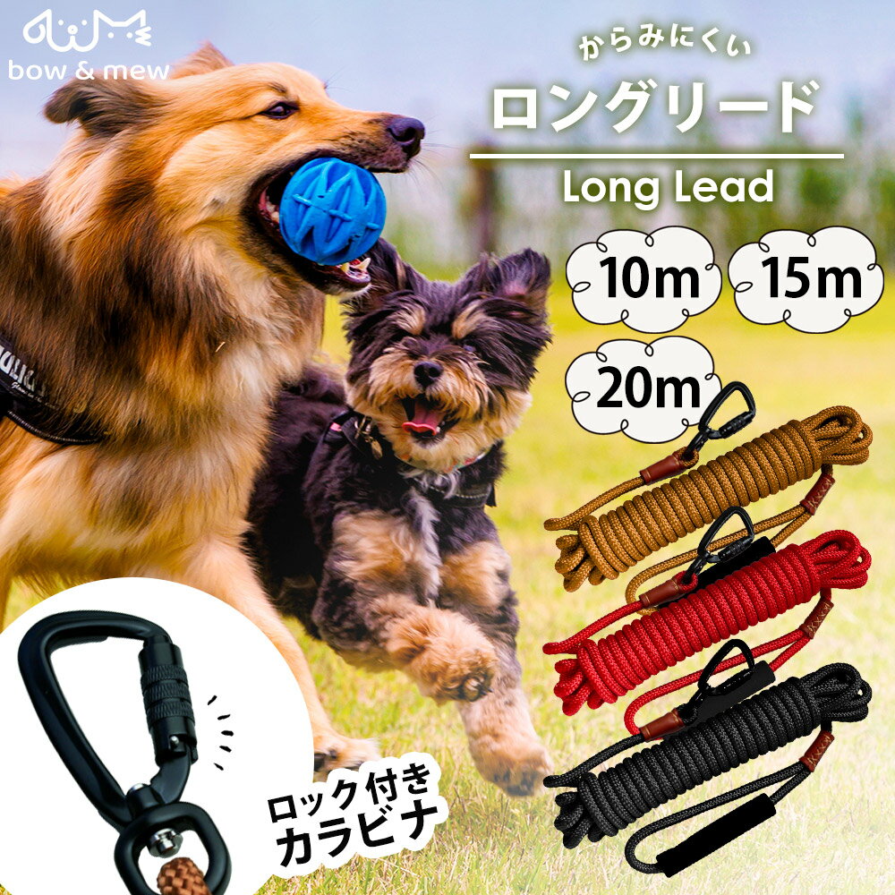 獣医師推奨 ロングリード【10m・15m・20m】 大型犬用 小型犬用 中型犬用 ロープ 犬 リード 外れ 防止 おしゃれ 可愛い 紐 丈夫 絡まない 360度回転 ねじれにくい 犬 絡まりにくい 長い 丸ひも 丸ロープ 軽量 安心 安全 頑丈 高品質 ロック付きカラビナ ほどきやすい 【RSL】