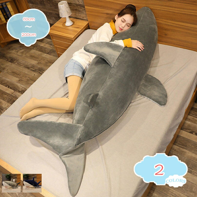 抱き枕 ぬいぐるみ 長い抱き枕 お昼寝枕 インテリア 誕生日 クリスマス おもちゃ アニマル ふわふわ大きい 柔らか 触り抜群 クッション プレゼント 出産祝い 枕 贈り物 彼女 動物柄 ギフト 鮫 フカ 肌触り 寝具 60/90/110cm グレー ブルー shopcp