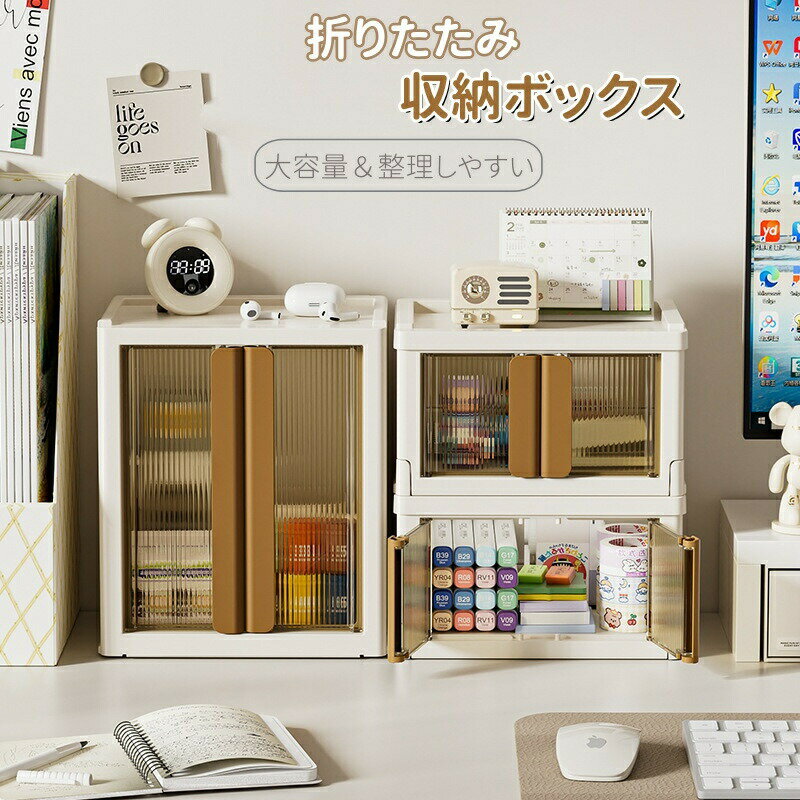 【最大P5】収納ボックス 折りたたみ 収納ケース 化粧品収納 半透明 蓋付き 積み重ね 折り畳みボックス ?上 デスク 文房具収納 小物 書類 収納 大容量 扉 強い耐荷重 防塵 防カビ 防湿 化粧品 調味料入れ 小物入れ キッチン 組立簡単 省スペース