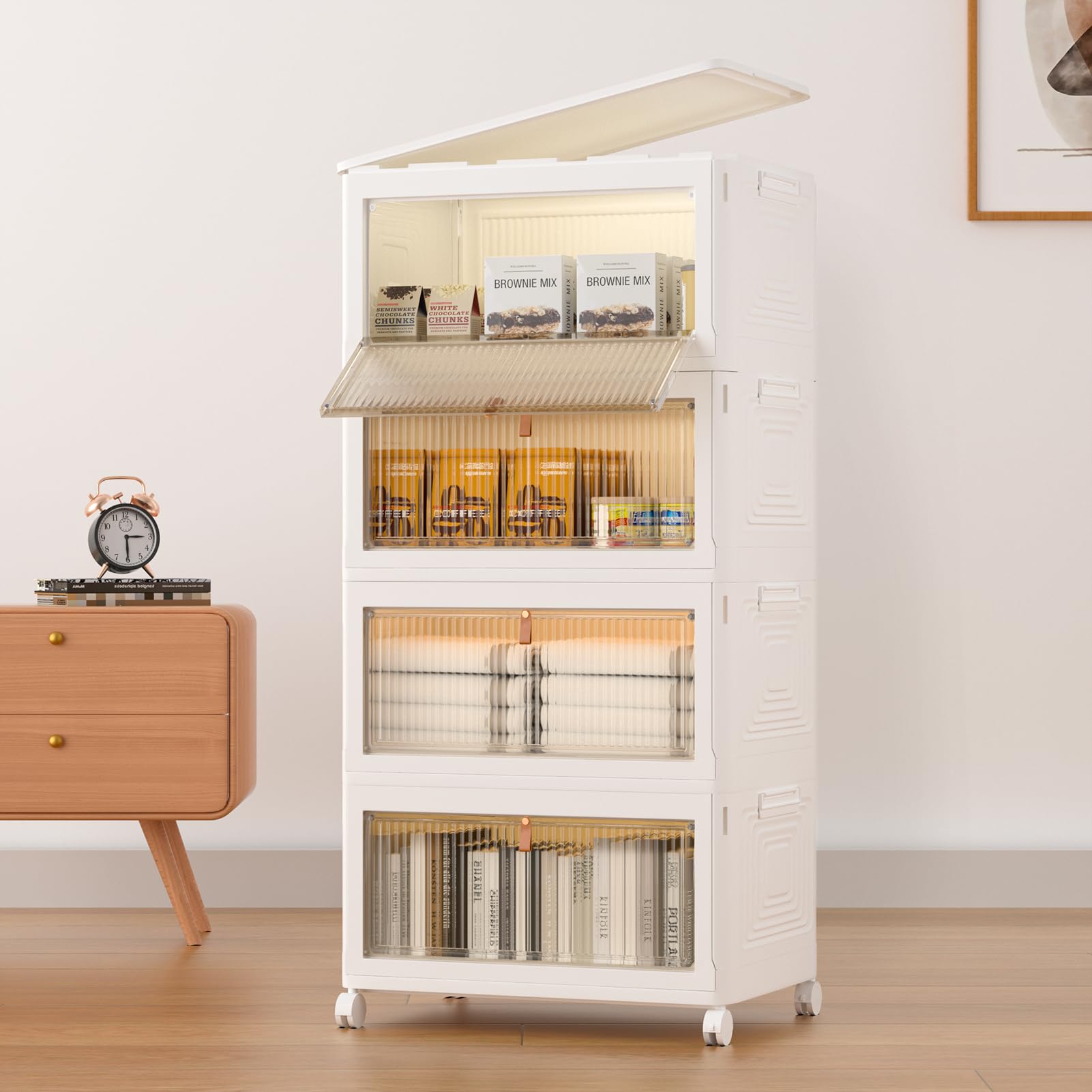 収納ボックス 積み重ね 折り畳み収納ボックス 前開き 蓋付き 収納ケース マグネット式扉 キャスター付き 組立簡単 透明 おしゃれ 小物/