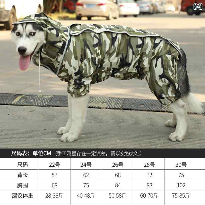 ドッグウェア レインコート 大型 犬 ゴールデンレトリバー サモエド 中型 オールインクルーシブ 四本足 ペット用品 防水 カジュアル 迷彩