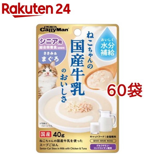 猫ちゃんの国産牛乳を使ったスープごはん ささみ&まぐろ シニア用(40g*60袋セット)