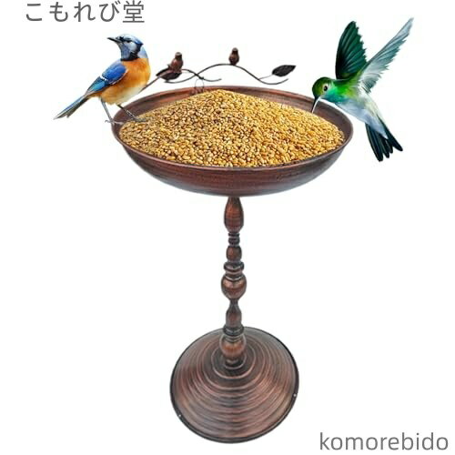 【送料無料】屋外用バードバス 屋外用スタンド型バードバスフィーダー 水飲み皿付き給餌トレイ バルコニー用 アイアンアートデザイン オウム