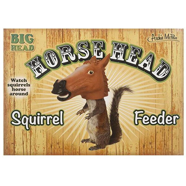 【商品詳細】 馬の頭をモチーフにした、ちょっと変わったユニークなリス用フィーダーです! 使い方は簡単!あらかじめ馬の頭に空いている穴に紐や、釣り糸に結び目をつけ、穴に通します、 通した紐を枝などに吊り下げます。 馬の頭のなかにナッツ、種子餌をいれ、内側の入口周りには入れた餌が落ちないようにピーナッツバターなど 塗るようにしてください。 リスが餌に夢中の間、頭が馬に変わってしまうという、アメリカンならではのユニークな商品です! 【商品詳細】 ・サイズ(約):高さ16.5cm×横幅10cm×奥行き24cm 【注意事項】 輸入品を含む一部の商品は検品のため開梱させて頂く場合がございます。また、新品であってもパッケージや本体に細かな傷や汚れがある場合がございますので、ご了承のうえお買い上げ頂きますようお願い致します。これらの傷は海外輸送時やアンティーク品のためについたものであり、不良品や中古品ではありませんのでご安心下さい。