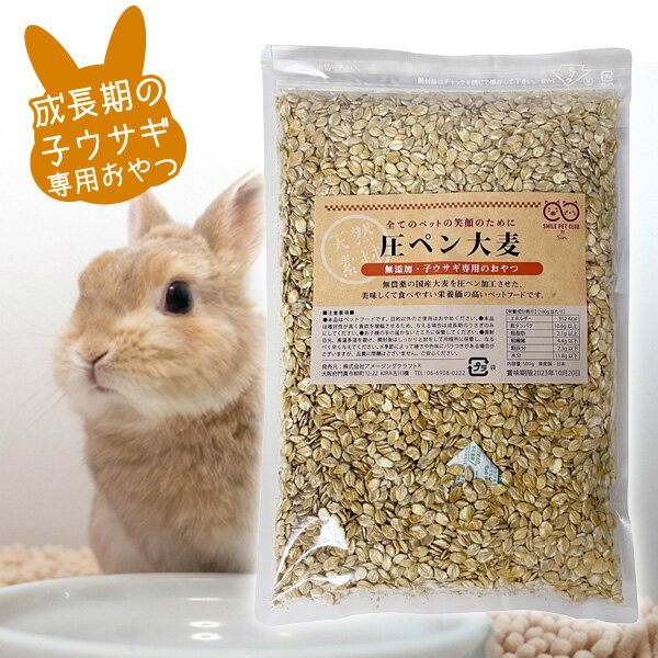 無農薬 圧ペン大麦 500g うさぎ おやつ フード 国産 大麦圧片 ペットフード 子ウサギ専用おやつ ウサギ SMILE PET CLUB