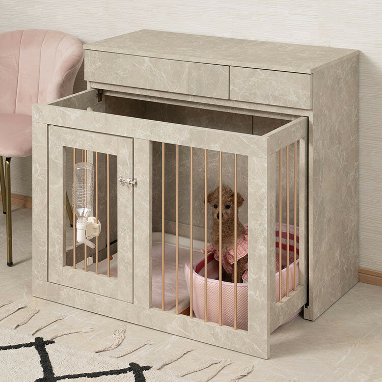 joli ドッグケージ 扉式 ペット ゲージ 室内 トイレ 収納 おしゃれ 省スペース インテリア 犬 ペット サークル 折り畳み コンパクト 子犬 囲い ベージュ グレージュ ゴールド 大理石 幅90cm(代引不可)【送料無料】