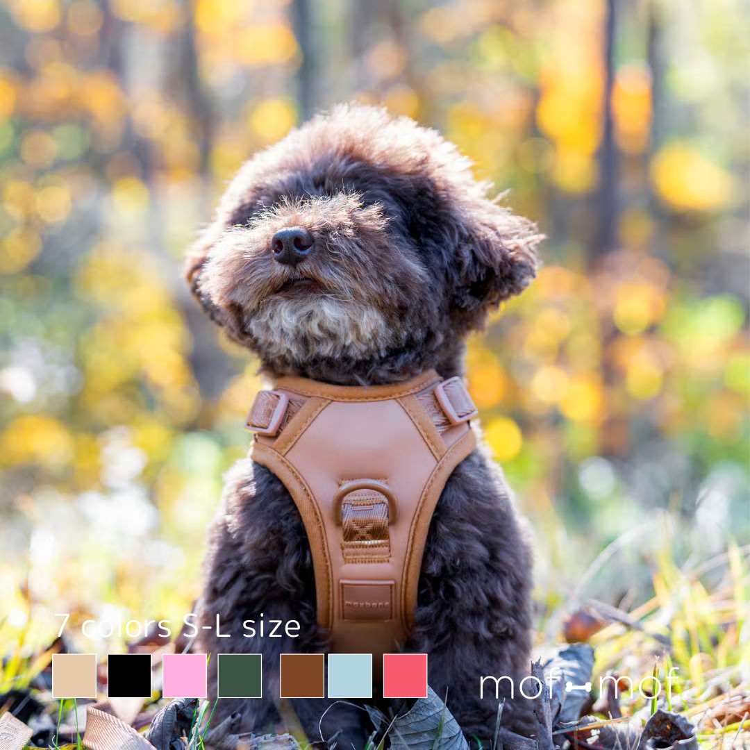 [max-bone] GO! Easy ハーネス 7色 柔らかく調整幅の大きな胸に負担の少ないハーネス。 別売りのハンドフリーリード、ポーチや首輪もあります。 →お揃いの3-in-1 ハンドフリーリードはこちら →お揃いの3-in-1 ハンドフリーminiリードはこちら →お揃いのポーチはこちら →お揃いの首輪はこちら -胸を覆うのでひっぱりぐせのある愛犬におすすめ -頭をくぐらせて、胸の2ヶ所をバックルで留めるタイプです -本体はソフトで耐久性の高いネオプレン(ウェットスーツに使われる素材) -紐部分はmax-boneのロゴ入り軽くて丈夫なナイロン素材 -背中側にハンドルつきでいざという時につかめます -首とお腹側それぞれ両サイド合計4カ所でサイズ調整可能 -背中側、お腹側それぞれにDリングつき -Dリングは金具にそれぞれの色を塗っています -引っ張りが強い子には胸側のリングを使ってください -サンドベージュ、ブラック、ピンク、カーキー、キャメル、ブルー、コーラルピンクの7色 -カーキーは首輪はありません -コーラルピンクにポーチはありません -グレーのトイプーは首28cm 胸39cm 体重4.5 kg でSサイズ着用 -柴犬は首40cm 胸50cm 体重7.5kgでMサイズ着用 -ブラウンのトイプーは首20cm 胸32cm 体重 2.5kgでSサイズ着用 -イタグレさん 体重5.8kg 首23cm 胸 43cmでS着用(お客様のサイズ) 【max-bone】 スウェーデン育ちのモデルでデザイナーのパリサさんが立ち上げた「もふもふ専用のラグジュアリーファッションブランド」エレガントでエフォートレスなデザインで世界中で人気。 →そのほか【max-bone】のアイテムはこちら サイズ S: 首 25-30 cm 胸 38-48 cm M: 首 30-42 cm 胸 44-58 cm L: 首 35-50 cm 胸 40-71 cm 布で覆う面積が多い分、体型によって合う合わないがございます。 体型に合わない場合には交換や返品など受け付けておりますので、実際にご使用になる前に室内で入念にご試着をお願いいたします。