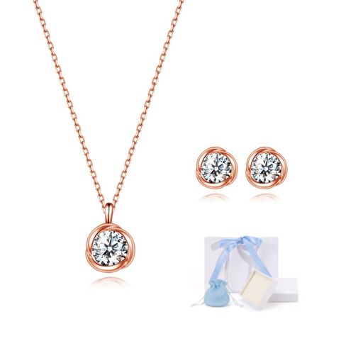 [Freebird]ネックレスレディースピアスセット「バラのキッス」最高級ジルコニアペンダントシルバー誕生日記念日母の日ホワイトデープレゼント人気女性ジュエリー(ピンクゴールド0.8カラ…