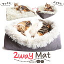 ペット ベッド 2way マット 洗える リバーシブル マット 犬 猫 マット時62x56cm ベッド時40x30cm ベッド 冬 ベッド ロングファー グレー アイボリー /ペット 2wayマット
