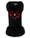 ★Susan Lanci/スーザンランシー★Red Gingham Nouveau Bow Black Fox Fur Coat犬用フェイクファーコート