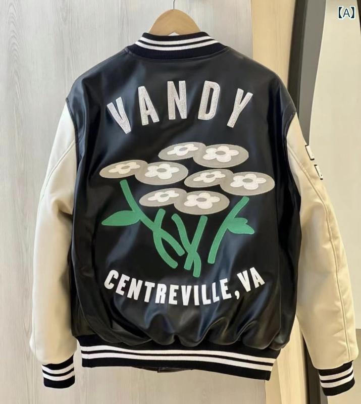 ベースボール レザージャケット メンズ レディース 秋冬 花柄刺繍 アメリカンスタイル ストリートファッション カジュアル トレンド アウター ユニセックス