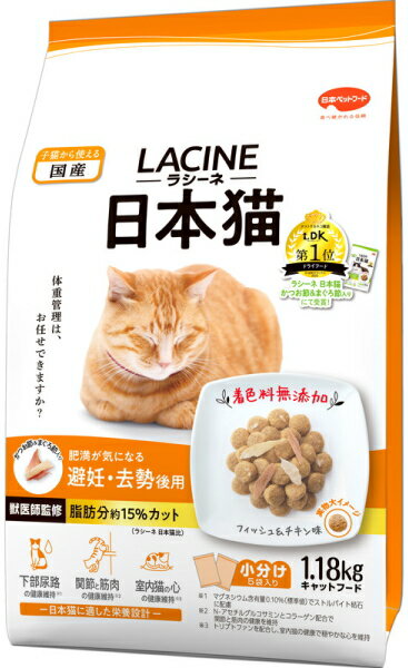 【日本ペット】ラシーネ 日本猫 避妊・去勢後用 1.18kgx8個(ケース販売)