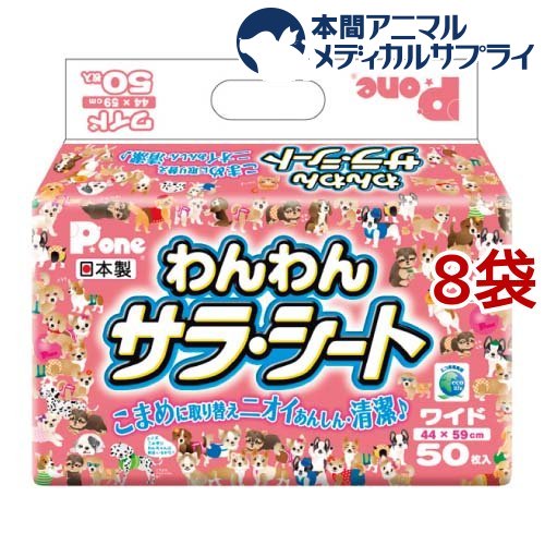 P・ワン わんわんサラ・シート ワイド(50枚入*8コセット)【dog_sheets】【P・ワン(P・one)】