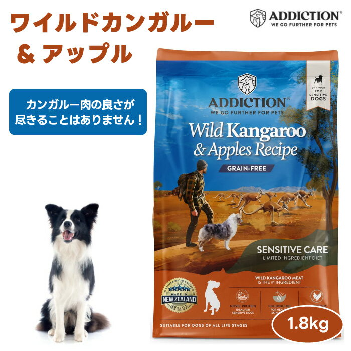 アディクション ワイルドカンガルー&アップル グレインフリードッグ 1.8kg ADDICTION ADC 犬用 ドッグフード カンガルー リノール酸 高たんぱく質 低脂肪 低コレステロール 抗酸化作用 整腸作用ペクチン 送料無料