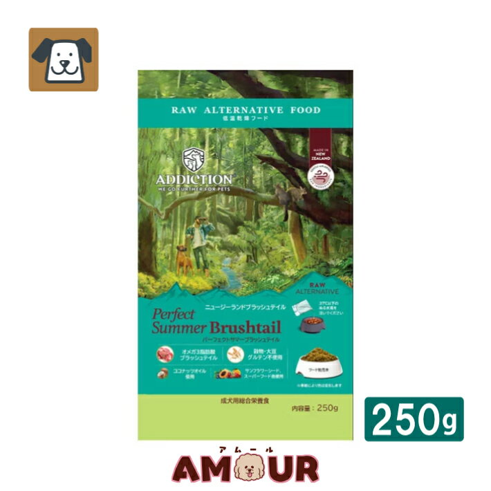 アディクション パーフェクトサマーブラッシュテイル 250g ADDICTION ADC 犬用 ドッグフード ドライフード 低温乾燥 脂肪酸 体重維持 体型維持 妊娠授乳期 共役リノール酸 葉酸 合成添加物不使用 穀物不使用