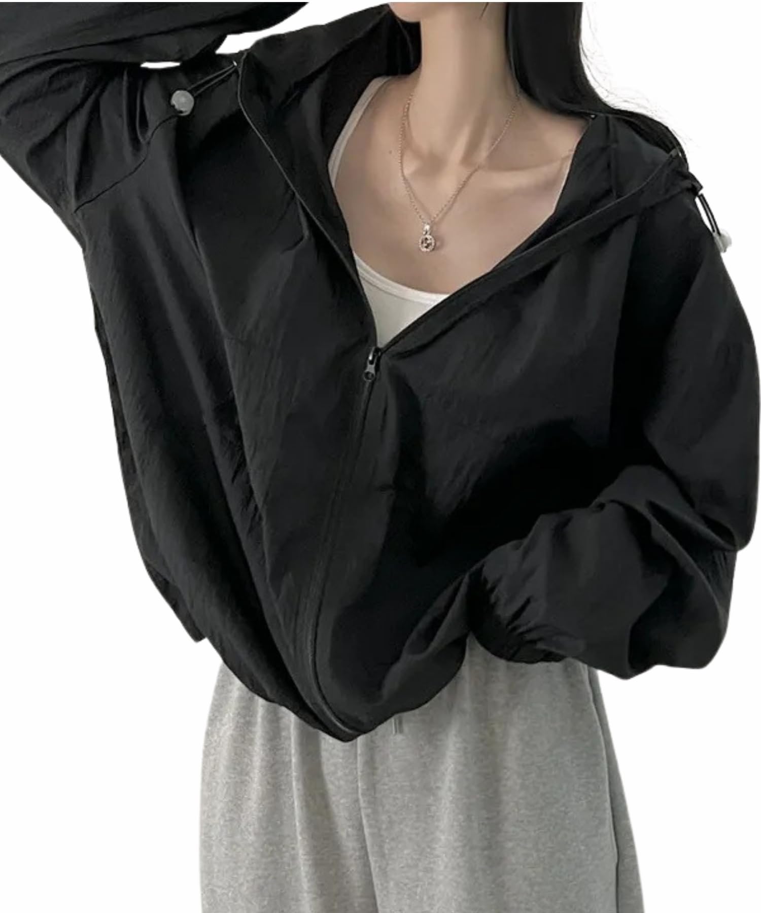 商品情報商品の説明主な仕様 【おしゃれでシンプルな無地レディース長袖日焼け防止パーカー】全体的にロングフードデザインを採用したレディース長袖日焼け防止服です。長袖のデザインは腕を完全に覆い、腕の皮膚が紫外線にさらされるのを防ぎます。ロングタイプは太ももやふくらはぎまで覆うことができ、脚の皮膚を保護します。フード付きのデザインはさらに配慮されています。フード部分はマスク構造に拡張して顔を覆うこともできるため、顔、首などの部分を効果的に保護し、日焼けを防止できます。衣服のジッパーデザインにより、着脱が簡単で、ジッパーは滑らかで引っかかりにくいです。袖口は穴あき仕様になっており、乗車時にも便利です!この日焼け止めジャケットは、クラシックで万能なブラック、キュートで遊び心のあるピンク、爽やかで上品なホワイト、高級感のあるダークグレー、大人っぽくて落ち着いたライトグレーの5色からお選びいただけます。【厳選された高品質、快適、通気性のある素材】この日焼け止め服は独特の生地を採用し、着用者に涼しく快適な着用感を与えます。生地に肌が触れると、明らかにほんのりとした涼しさを感じられます。これは、生地の特殊な繊維構造と素材の特性により、熱を素早く伝導し、体表面温度を下げることができるためです。蒸し暑い夏の日には、この日焼け止め衣類の氷のような生地が効果的に熱を和らげ、体をドライで快適に保ちます。同時に、生地は通気性に優れています。微細繊維構造により空気が自由に流れ、長時間着用しても蒸れやムレを防ぎます。たくさん汗をかいた後でも、水分を素早く排出し、通気性に優れているため、着用者は常に爽やかで快適な状態を保つことができます。高温環境での長期着用に適しています。【日焼け止め服の実用性と機能性】女性用日焼け止め服は長いフード付きデザインを採用し、頭から足まで全身をカバーします。この高倍数の日焼け防止性能は、最も要求の厳しい日焼け防止シナリオにも対応でき、究極の日焼け防止を追求する人にとって最適な選択です。袖口と裾は伸縮性があり、端からの紫外線の侵入を防ぎ、体の曲線にフィットして着用時の安定性を高めます。服の両側に実用的なポケットがあり、携帯電話や鍵などの小物を収納するのに便利で、日常の使用がより便利になります。日焼け防止効果を楽しみながら、着用者に思いやりと利便性を感じさせます。炎天下での運転、街の散歩、アウトドア旅行、ビーチでの休暇など、日焼け、シミ、光老化から肌を完全に保護し、紫外線によるダメージを心配することなく屋外でのアクティビティを楽しむことができます。【あらゆる着こなし、あらゆるシーンに対応】カジュアルなショートパンツ、スウェットパンツ、スカートなどと合わせてシンプルでファッショナブルな印象に。これはさまざまなシナリオに適用できます。毎日の通勤時のUVカットジャケットとしてもお使いいただけます。ゆったりとしたフィット感と通気性のある素材により、乗車中の動きが制限されません。旅行や休暇の際には、長持ちするデザインと包括的な保護が不可欠です。この日焼け防止服は、従来の日焼け防止服の単調さを打ち破り、ファッション要素と実用的な機能を完璧に組み合わせ、着用者がどんな場面でも美しく安全に太陽の挑戦に立ち向かうことを可能にします。美しさと強さを兼ね備え、ファッション性と汎用性を兼ね備えた夏のワードローブに欠かせないアイテムになります。【ご購入の際のご注意】こちらのレディース日焼け止め服はFサイズのみの販売となります。カラーやサイズが気に入ったらお気軽にご注文ください。実際の商品を採寸しているため、サイズに多少の誤差が生じますので、ご注文の際は慎重にお選びください。 ※実際の商品の色は画像と若干異なる場合がございますのでご了承ください。ご質問やサポートが必要な場合は、喜んでお手伝いし、ご質問にお答えいたします。繰り返し洗浄できますが、強くこすりすぎないようにご注意ください。当社は、すべてのお客様に最高のショッピング体験を提供することに尽力しています。あなたに最適なサイズを見つけてください!