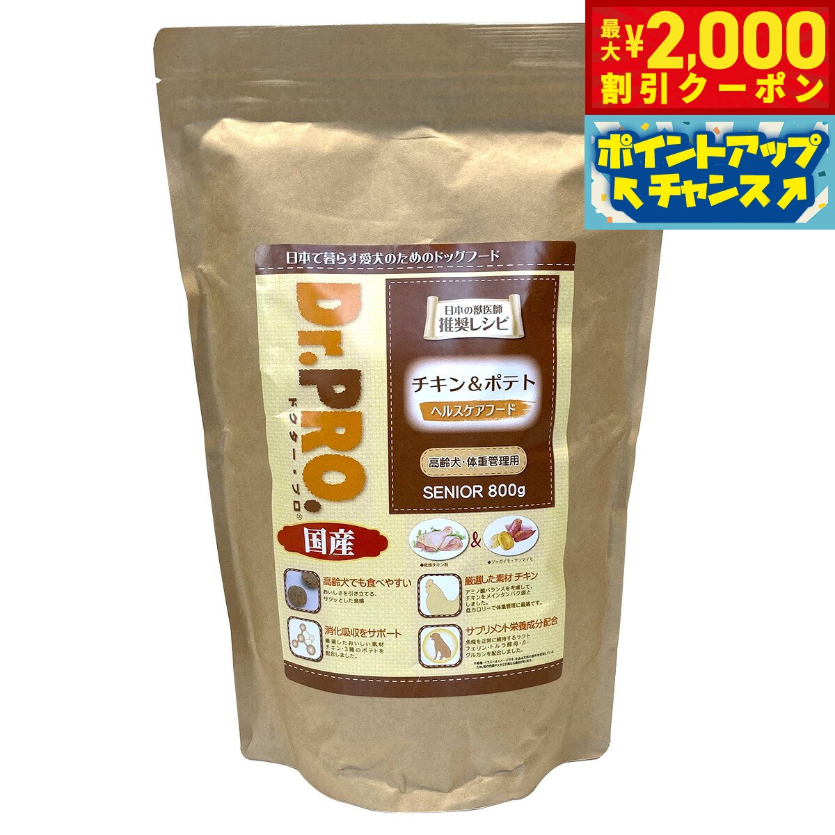 【最大2000円OFFクーポン!&店内ポイント最大52倍!本日限定!】ドクタープロ Dr.PRO チキン&ポテト 高齢犬 体重管理用 800g ドッグフード 国産 犬