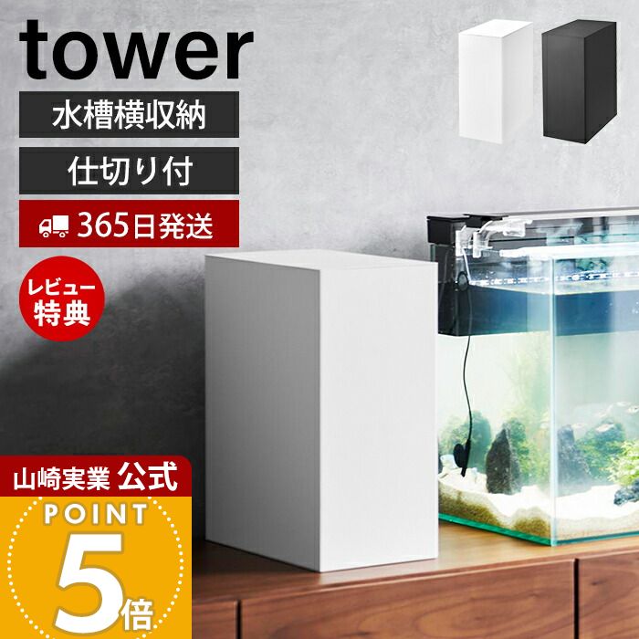 【365日出荷&当店限定特典付き】山崎実業 水槽横収納ボックス tower 公式 タワー 水槽 収納 2段 仕切り コード収納 エサ メンテナンス用品 観賞魚 水槽お手入れ 一括収納 電源タップ ホワイト ブラック 1891 1892 タワーシリーズ