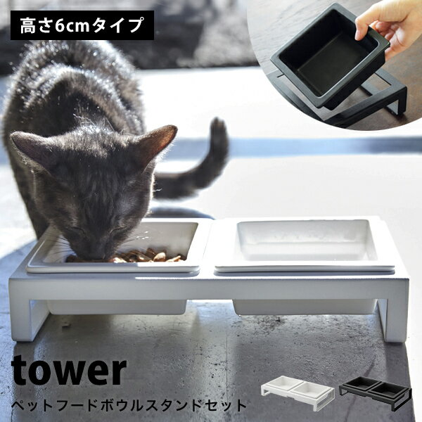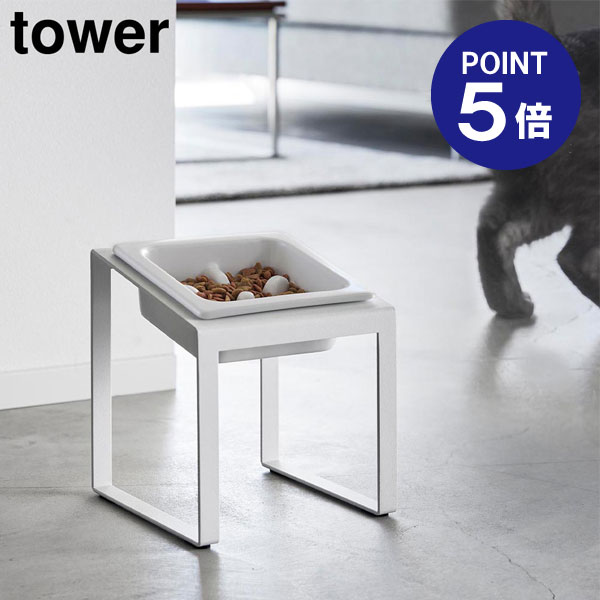 タワー ペット 食器 陶器 ペットフード ボウル スタンド セット おしゃれ tower小型犬 ネコ 子犬 子猫 ペット 食器台 餌皿 エサ皿 餌入れ エサ入れ 水飲み 器04206 04207 山崎実業 タワーシリーズ ホワイト ブラック シンプル