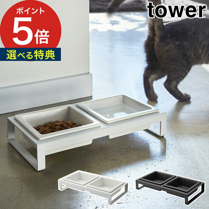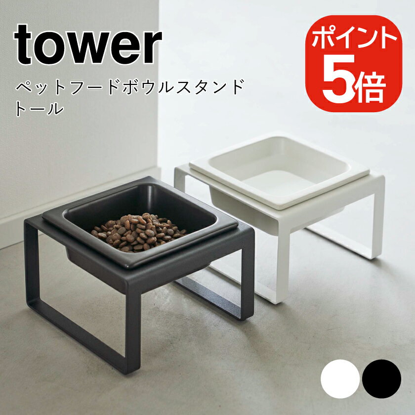 【特典付き】[ ペットフードボウルスタンドセット トール タワー ]山崎実業 tower ペットフード 猫 犬 フードボール フードボウル 食器台 おしゃれ ペット 餌皿 エサ皿 餌入れ エサ入れ 器 ご飯 ネコ イヌ 陶器 yamazaki ブラック ホワイト 4744 4745 公式