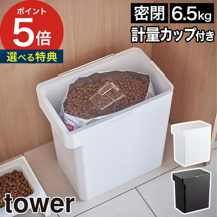 【365日出荷&特典付き】 [ 密閉ペットフードストッカー タワー 6.5kg 計量カップ付 ] Yamazaki ストッカー 山崎実業 tower ペット 保存容器 犬 ドッグフード 大容量 キャットフード 保存 猫 5615 5616 北欧 おしゃれ ブラック ケース シンプルホワイト 餌入れ 黒