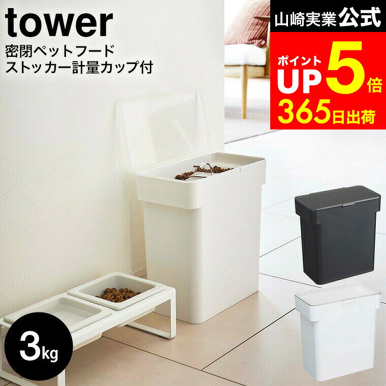 【レビュー特典】 tower 〔 山崎実業 密閉袋ごとペットフードストッカー タワー 3kg 計量カップ付 〕 犬 猫 ペット 保存容器 ストッカー 保存ケース 保存 密閉 密閉容器 ドライペットフード 収納 袋ごと シンプル コンパクト 公式 ホワイト ブラック 5613 5614 YAMAZAKI