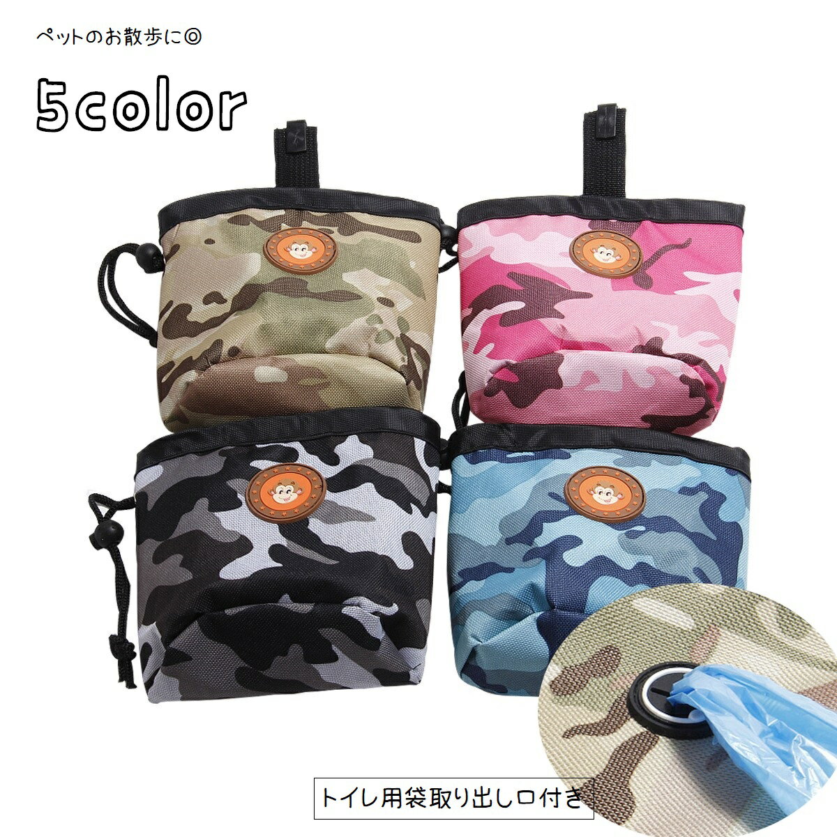 送料無料 トリーツポーチ お散歩バッグ 迷彩柄 ペット用品 ペットグッズ カバン ウエストポーチ 携帯用トイレ袋入れ エチケット袋収納ケース ポケット付き タグ付き メッシュ 多機能 単色 小物入れ 持ち運び コンパクト 散歩 お出かけ 外出 カジュアル シンプル かっこいい