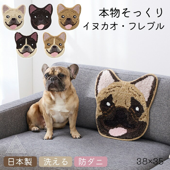 【送料無料 日本製】新色 フレブル チェアパッド チェアマット フレンチブルドッグ イヌ ふわふわ イヌカオ マット 犬柄 犬 いぬ 犬雑貨 洗える 防ダニ 滑り止め 可愛い 全7色 クリーム フォーン パイド ブラック プレゼント ギフト SUMI004