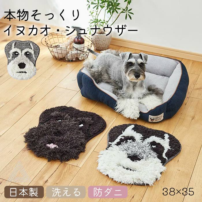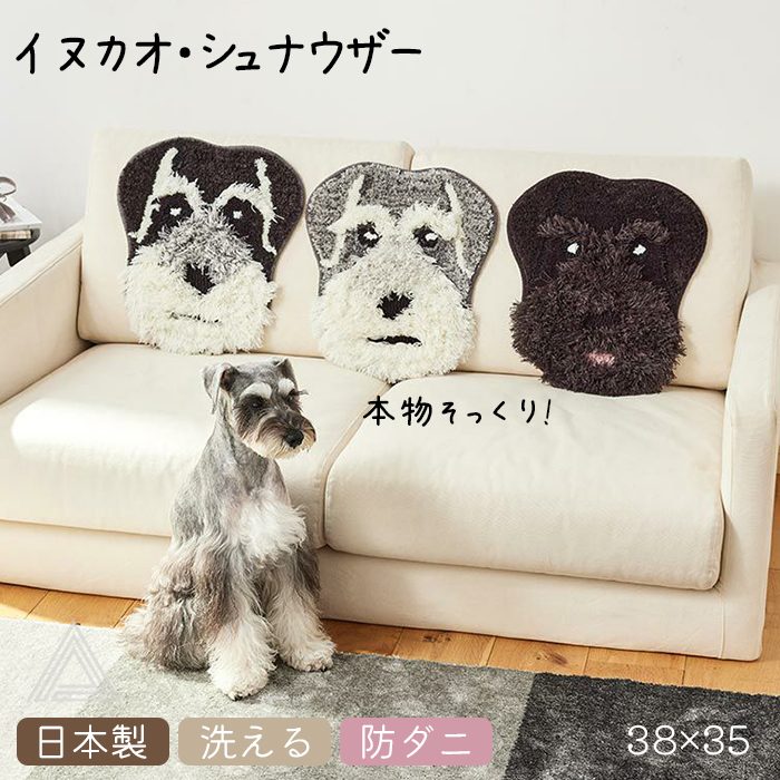 【日本製】シュナウザー マット 新色 チェアパッド チェアマット 38×35cm ふわふわ イヌカオ マット 犬柄 犬 いぬ 犬雑貨 洗える 防ダニ 滑り止め 可愛い 床暖房対応 秋冬 母の日 ブラック ブラックシルバー ミニチュアシュナウザー プレゼントギフト 送料無料 SUMI007