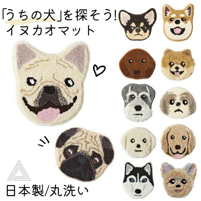 【日本製】イヌ チェアパッド チェアマット フレンチブルドッグ フレブル パグ ふわふわ イヌカオ マット 犬柄 犬 いぬ 犬雑貨 チワワ 柴犬 ダックス ポメラニアン 洗える 防ダニ 滑り止め 可愛い プレゼント ギフト SUMI001 「うちの犬」を探そう!イヌカオマット 【商品番号】SUMI001【柄&サイズ】Aチワワ:33×40cmBシバイヌ:40×33cmCダックス:32×38cmDポメ:32×35cmEシュナウザー:38×35cmFフレブル:38×35cmGシーズー:32×38cmHマルチーズ:32×38cmIゴールデン:36×38cmJパグ:32×38cmKハスキー:39×33cmLヨーキー:40×37cm【素材】アクリル100%【日本製】【コメント】それぞれの飼い主のみなさんが一番魅力を感じるポイントを一匹ずつ表現しました!飼い主のみなさんにとって一番かわいい「うちのペット」。洗える、防ダニ、すべり止め、ホットカーペット・床暖房対応豊富なラインナップ姿が全く違う、それぞれの犬種の特徴を細かく描き分けています。ふわふわ・つやつや毛のバリエーション種類ごとの毛の表現にこだわりました。プードルの巻き毛はニットデニットの加工糸、もこもこのビションフリーゼは柔らかく艶のあるハイシープナイロン。シュナウザーの髭はシャギー・・・表情豊かなシリーズINUKAOには一匹ずつ様々な表情があります。幸せそうな笑顔、しまい忘れた舌、訴えかけるようなうるうるの目。そんなその犬の一番かわいいポイントをデザインしました。 2