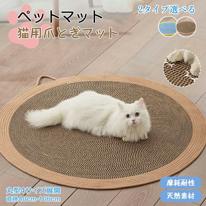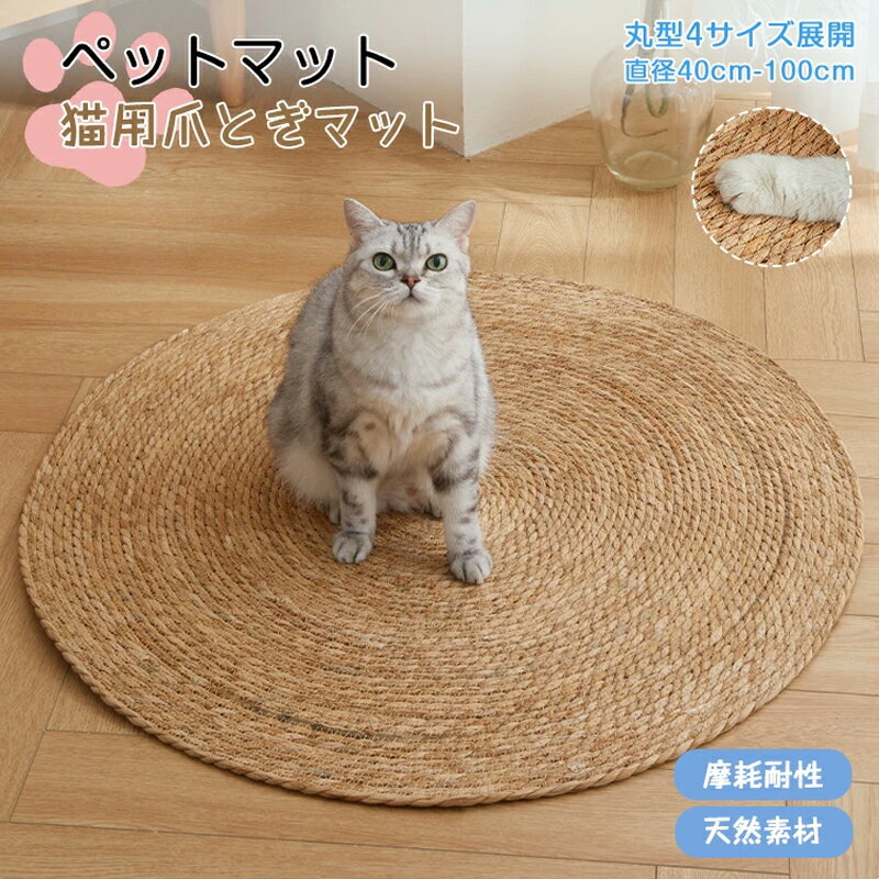 猫用 ペットベッド 天然素材風 爪とぎマット 円形ラグ 爪磨き ストレス解消 ねこ 寝具 おしゃれ ペットカーペット フローリング リビング マット 廊下 下敷き 大判 キズ防止 大きいサイズ 40 60 80 100 ペットラグ 多機能 引っ掻き防止 円形 チェアマット