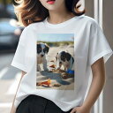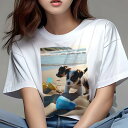 ボーダーコリー Tシャツ 犬愛 ユニークデザインレディース 犬ファン 半袖 春夏 プリント 大人カジュアル かわいい 人間用 ギフト 個性的 猛暑対策 砂浜 ボーダーコリー 玩具