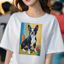 ボストンテリア Tシャツ 犬愛 ユニークデザインレディース 犬ファン 半袖 春夏 プリント 大人カジュアル かわいい 人間用 ギフト 個性的 猛暑対策 おもちゃ ボストンテリア クッション