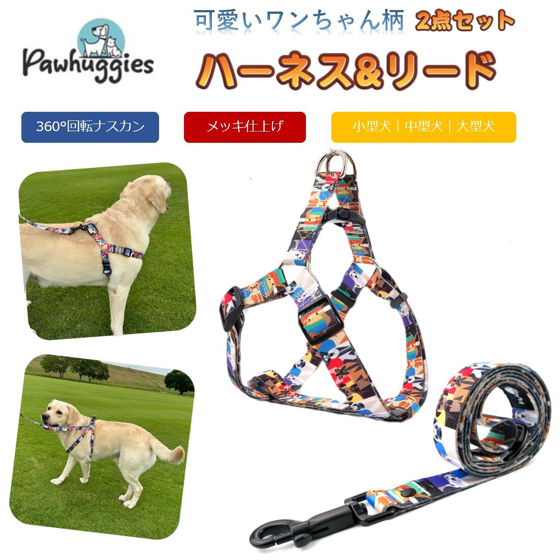 犬 ハーネス リードセット 小型犬 中型犬 胴輪 抜けない かわいい 簡単着脱 衝撃吸収 調節可能 引っ張り防止 咳き込み軽減 散歩 出かけ用 安全 S M L XL 送料無料