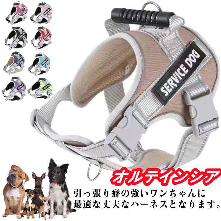 犬用ハーネスハンドル付パワーハーネス胴輪反射テープ超小型犬-大型犬飛び出し防止簡単装着ハンドルハーネスソフト衝撃吸収大型犬中