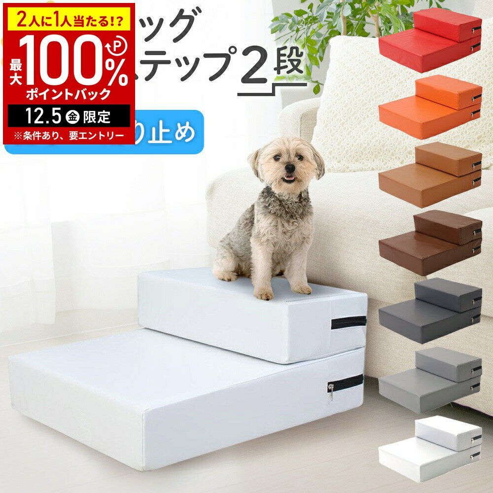 【半額 & 5%OFFクーポン12/1限定 利用条件あり】 ドッグステップ 犬 階段 2段 ドッグステップ階段 レザー 犬用階段 ペットステップ 防水 昇降台 踏み台 折りたたみ 滑り止め 犬用 トイプードル 硬め クッション スロープ コンパクト