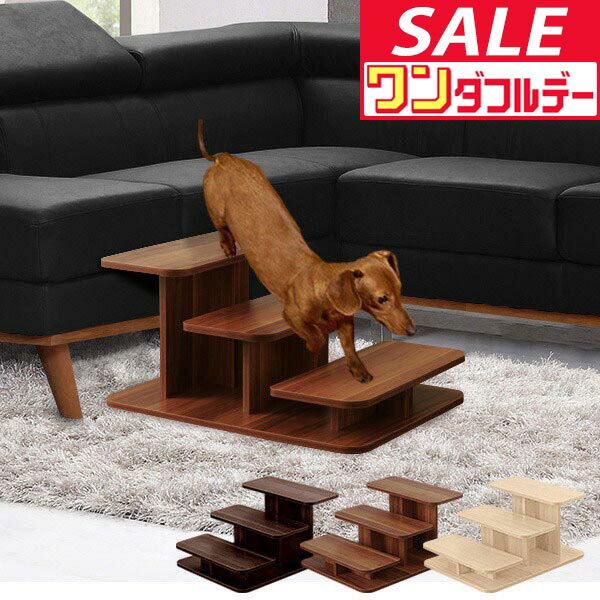【12/1ワンダフルデー特価】【楽天1位】犬 階段 ステップ ドッグステップ 3段 木製 ペット用 ウッドタイプ 幅 46cm 木目調 ペット用階段 ペットステップ ペット スロープ 段差 踏み台 犬用階段 小型犬 猫 老犬 高齢犬 ★[送料無料]